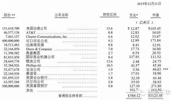 如果以伯克希尔公司的年终控股来计算,我们在"四大公司"2015年的股权收入达47亿美元。然而,在我们向你报告的收益中,我们只计算他们的分红——去年约18亿美元。但毫无疑问:我们没有报告的这些公司近30亿美元的收入和我们记录下来的部分每一分都有同样的价值。